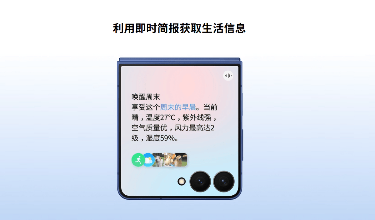 三星Galaxy Z Flip7折叠屏手机以用户需求为焦点,智能案牍帮写、画图帮手、生成式编纂、音频橡皮擦等功能,让手机更好地融入糊口取创做之中,别离笼盖第三方使用动态取个性化糊口消息,